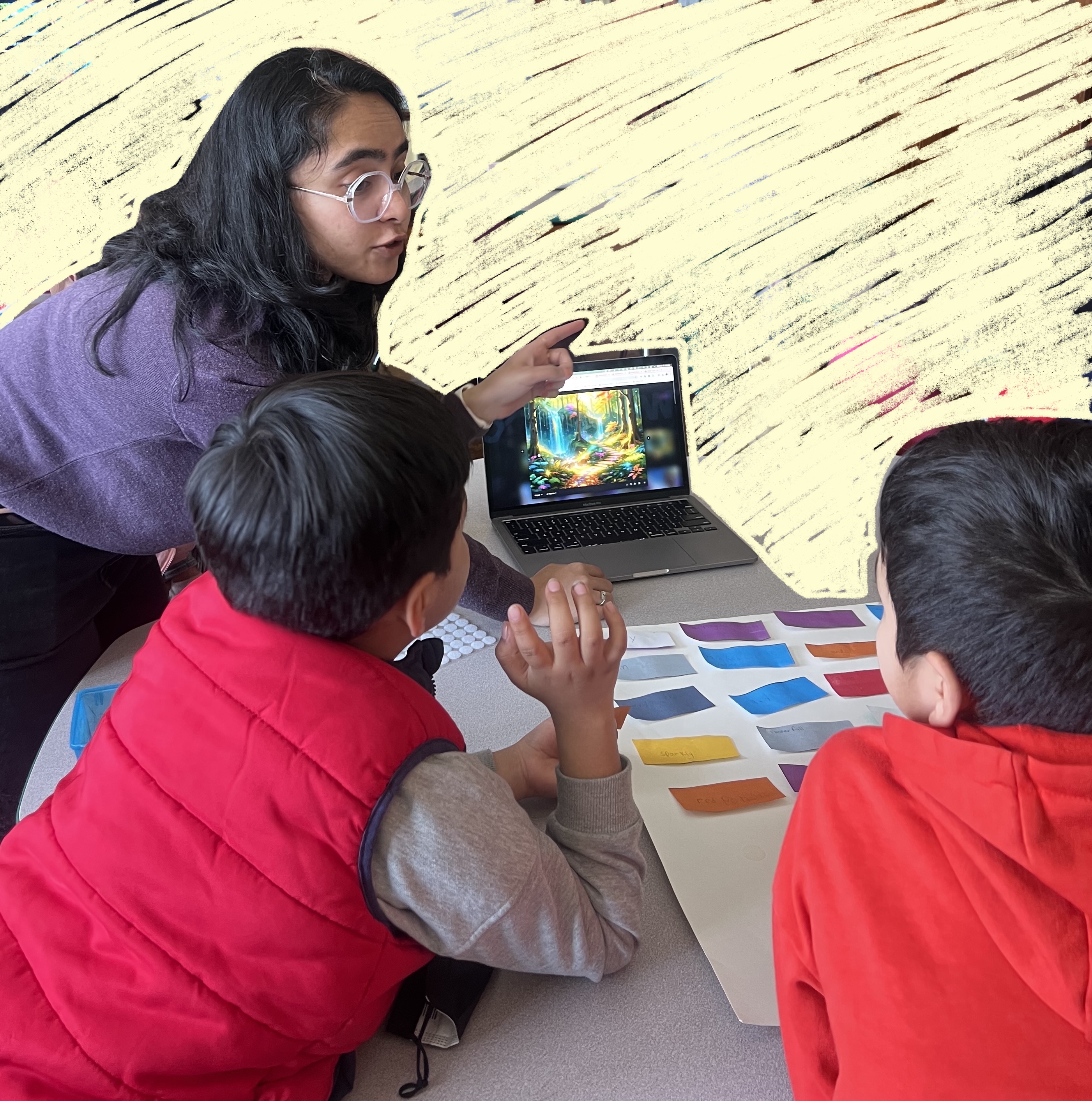 Students struggled to connect their ideas to AI outputs. We designed visualizations to show how a prompt is transformed into an image while reinforcing "AI makes mistakes" and that students have agency.